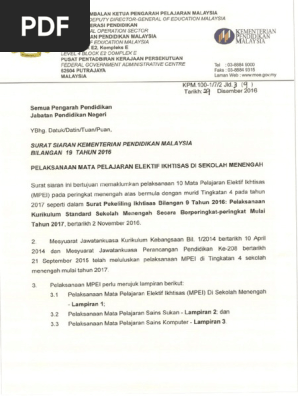 Surat Siaran Kpm Bil 9 Tahun 2016 Pelaksanaan Mata Pelajaran Elektif Ikhtisas Di Sm Pdf