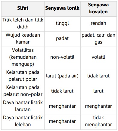 Bandingkan Sifat Senyawa Ionik Dan Senyawa Kovalen